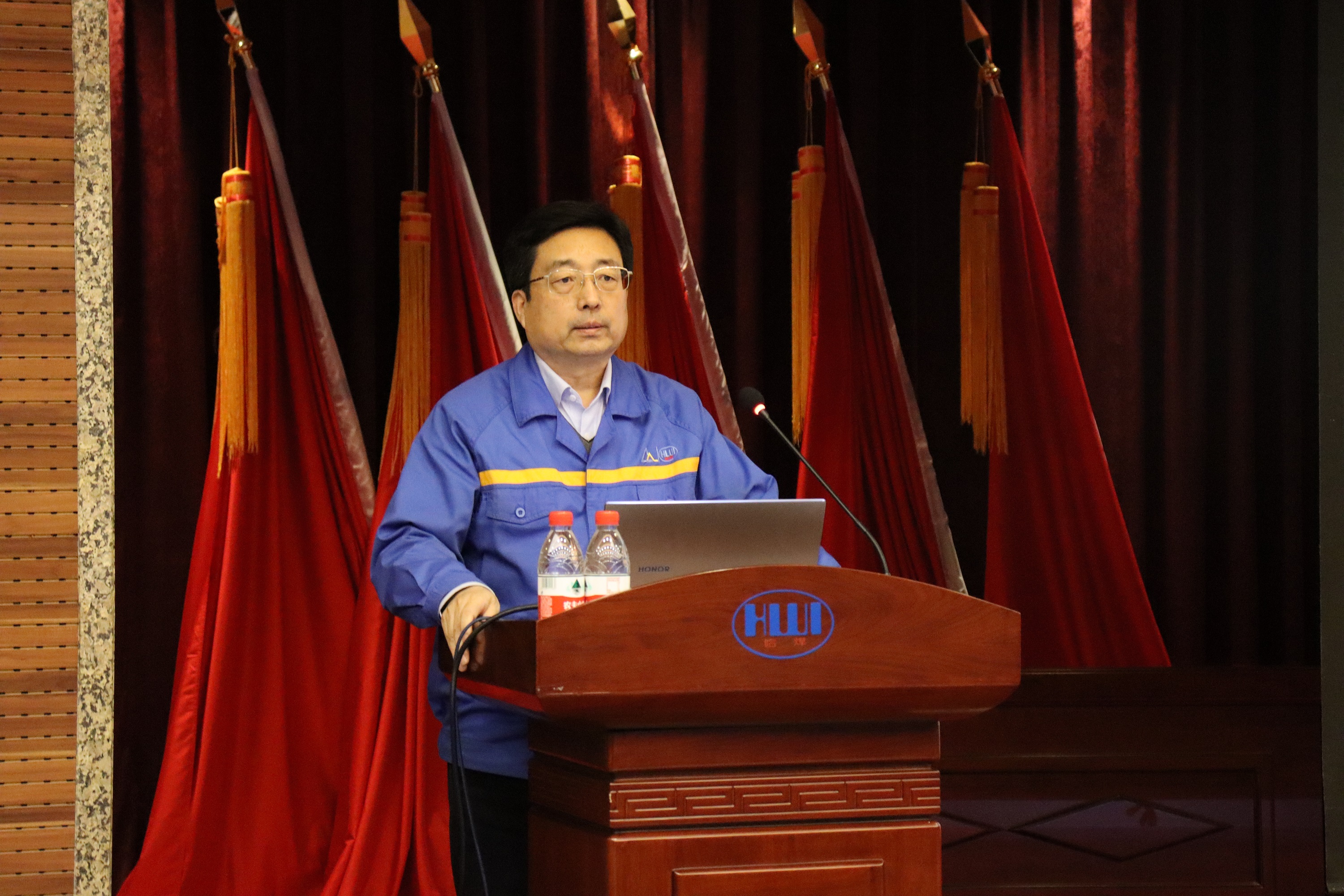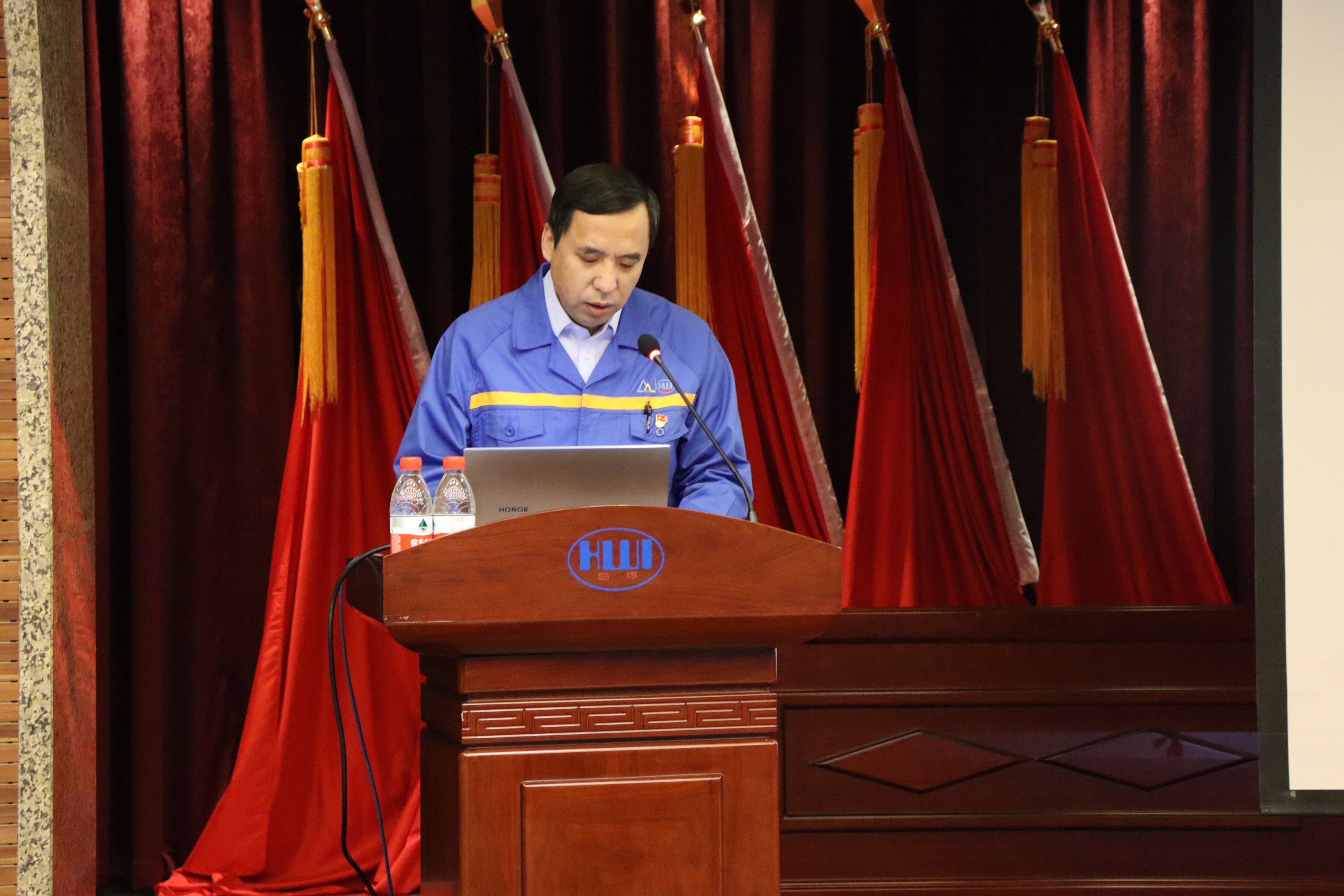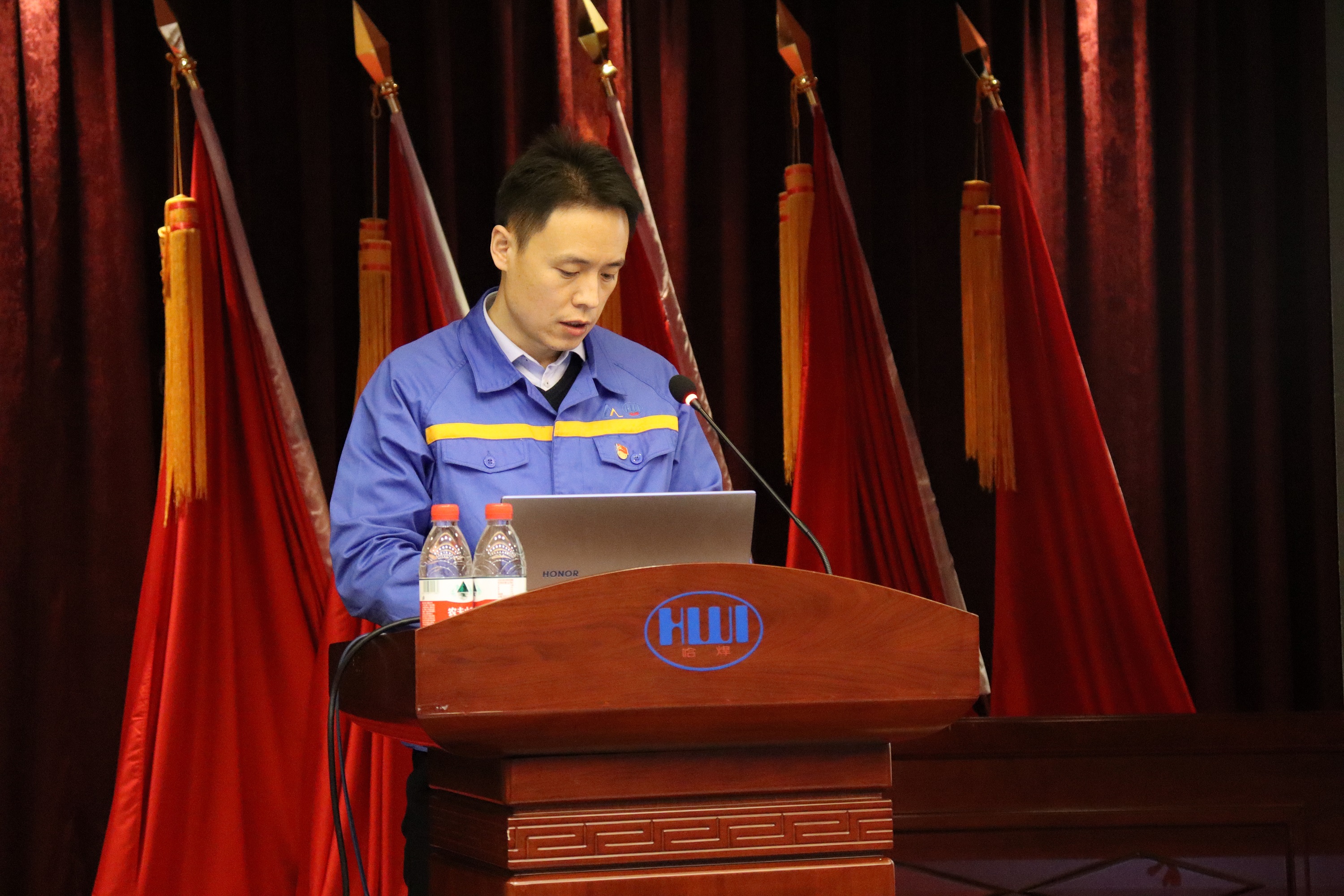 按照疫情防控要求,會議在本部學術報告廳設主會場,哈焊國創、哈焊華通、威爾公司設三個視頻分會場。哈焊院領導班子成員、中層干部、各黨支部書記及委員、下屬公司經理層、關鍵崗位人員共計67人參加會議。