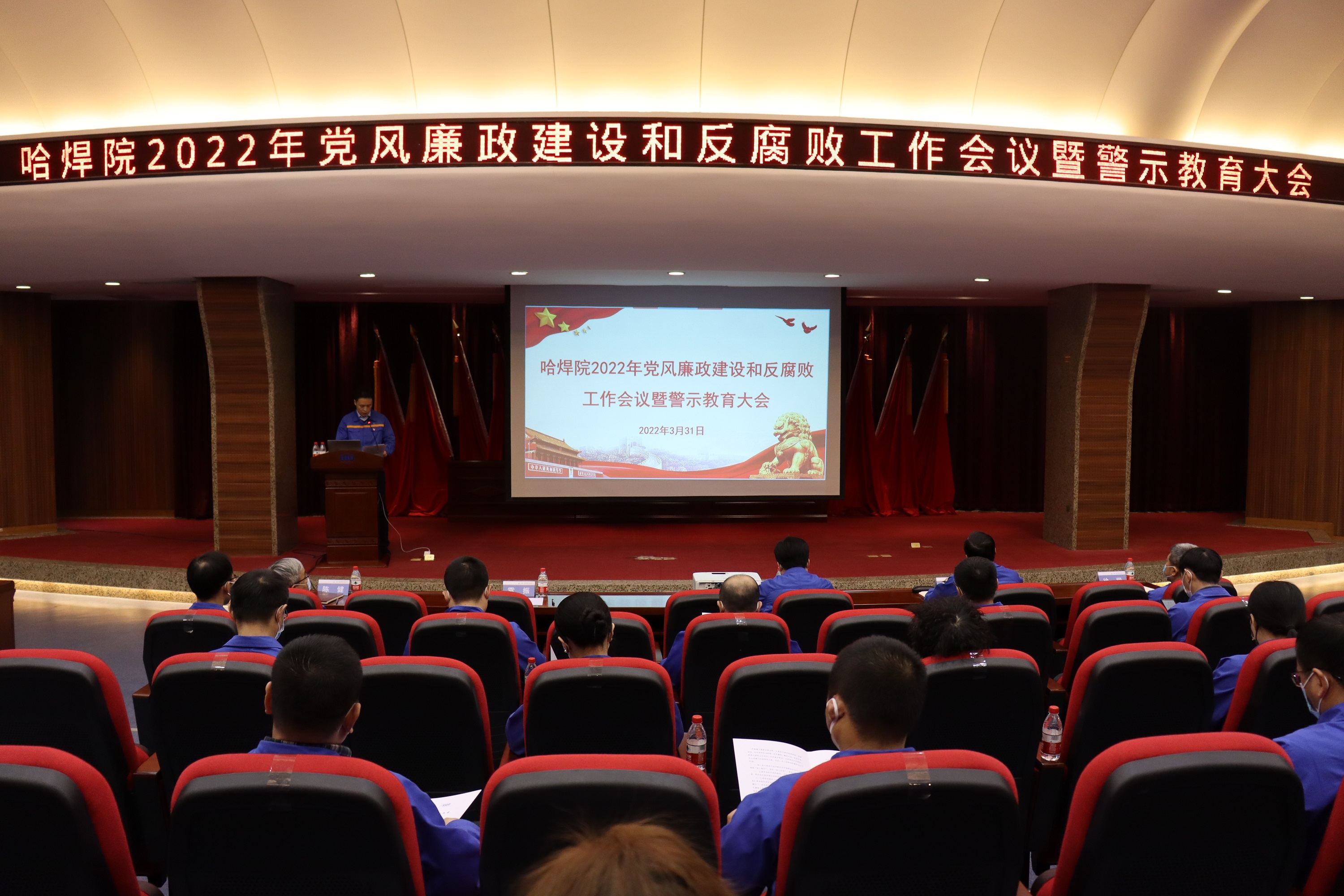 為深入貫徹落實十九屆中央紀委六次全會精神以及集團黨風廉政建設和反腐敗工作會議暨警示教育大會工作部署,全面總結哈焊院2021年黨風廉政建設和反腐敗工作,部署2022年重點工作任務,開展警示教育,哈焊院于3月31日召開2022年黨風廉政建設和反腐敗工作會議暨警示教育大會。會議由哈焊院總經理、黨委副書記雷振同志主持。