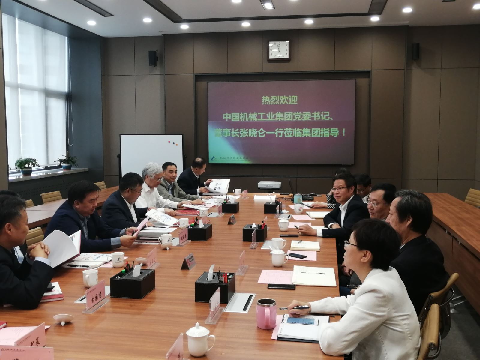10月11日,中國機械工業集團有限公司黨委書記、董事長張曉侖一行到訪機械總院集團,機械總院集團黨委書記、董事長王德成給予熱情接待,黨委副書記、總經理王西峰出席會議,會議由黨委委員、副總經理單忠德主持。