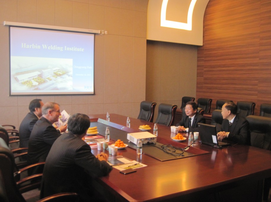 何實所長首先對客人的來訪表示熱情歡迎,并簡單介紹了焊接研究所的情況。樸東光秘書長通過幻燈片向客人們展示了我所的發展歷程、機構及業務分類、科研、產業、質檢、行業服務等方面的工作內容和成效??藙谒姑椎聽柕婪蛳壬蛭宜氖⑶榻哟硎靖兄x,對哈焊所多方面卓有成效的成就表示欽佩和贊賞。雙方就焊接及連接技術的發展、培訓及標準化、行業服務等內容進行了交流。何實所長還向客人介紹了我所英文版焊接期刊《China