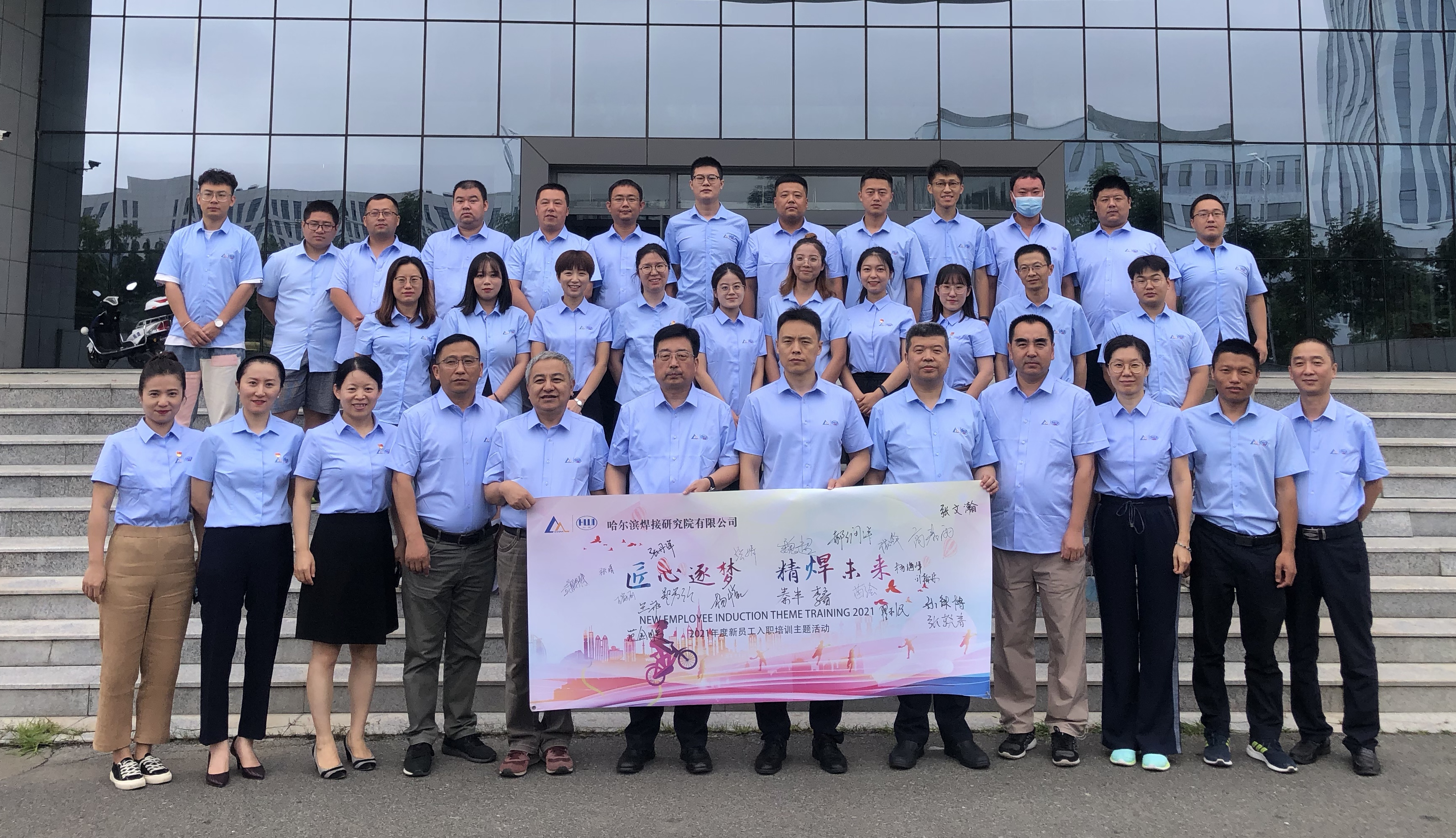 8月13日,哈焊院舉辦了2021年新員工入職培訓(xùn)活動(dòng),活動(dòng)包括理論培訓(xùn)、實(shí)地參觀、破冰游戲等環(huán)節(jié)。哈焊院黨委書記、董事長(zhǎng)楊玉亭,副總經(jīng)理雷振及職能部門負(fù)責(zé)人出席活動(dòng), 20余名新入職員工參加活動(dòng)。